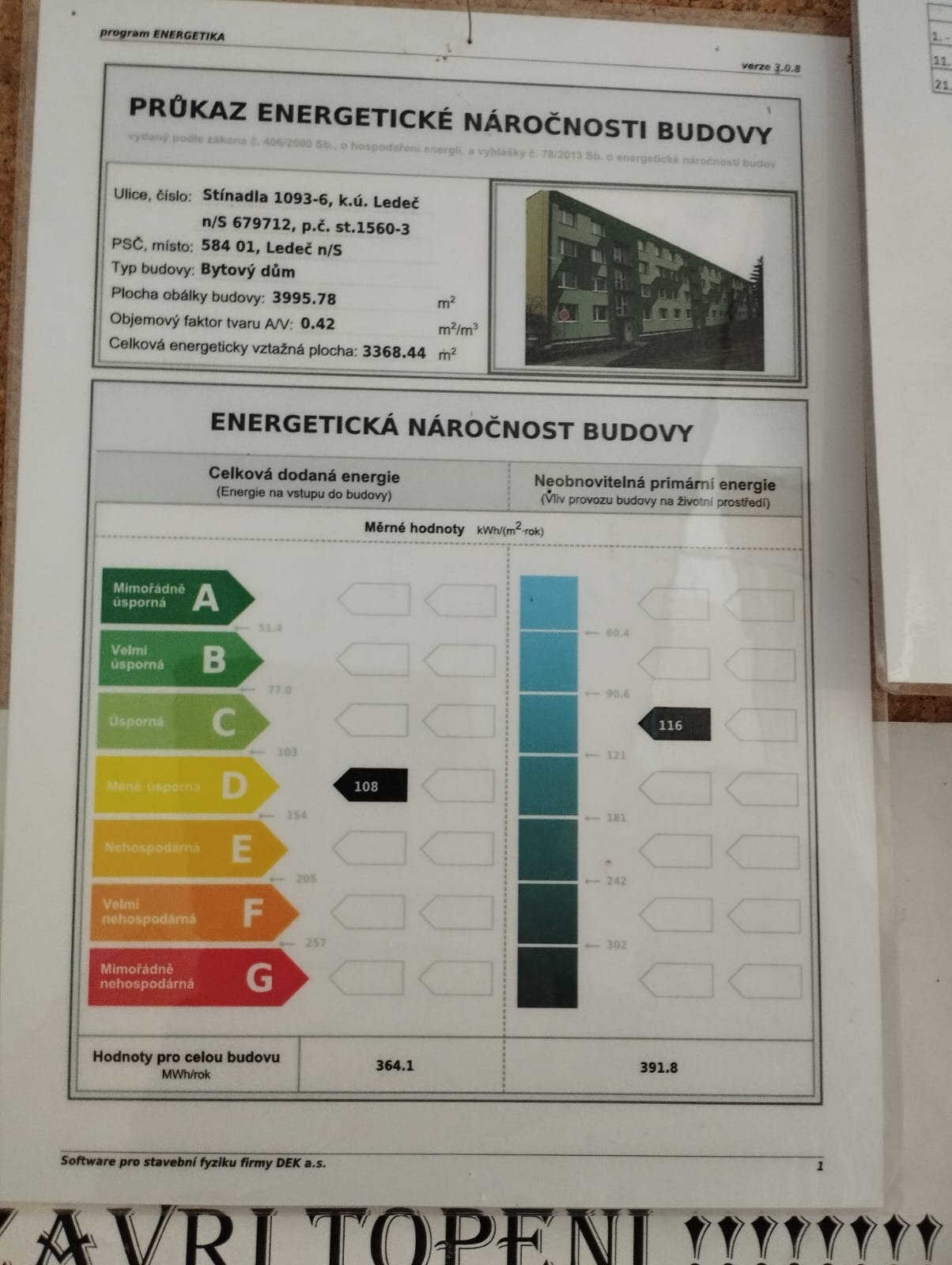 | Ukazatel ENB | 116 kWh/m2 za rok |